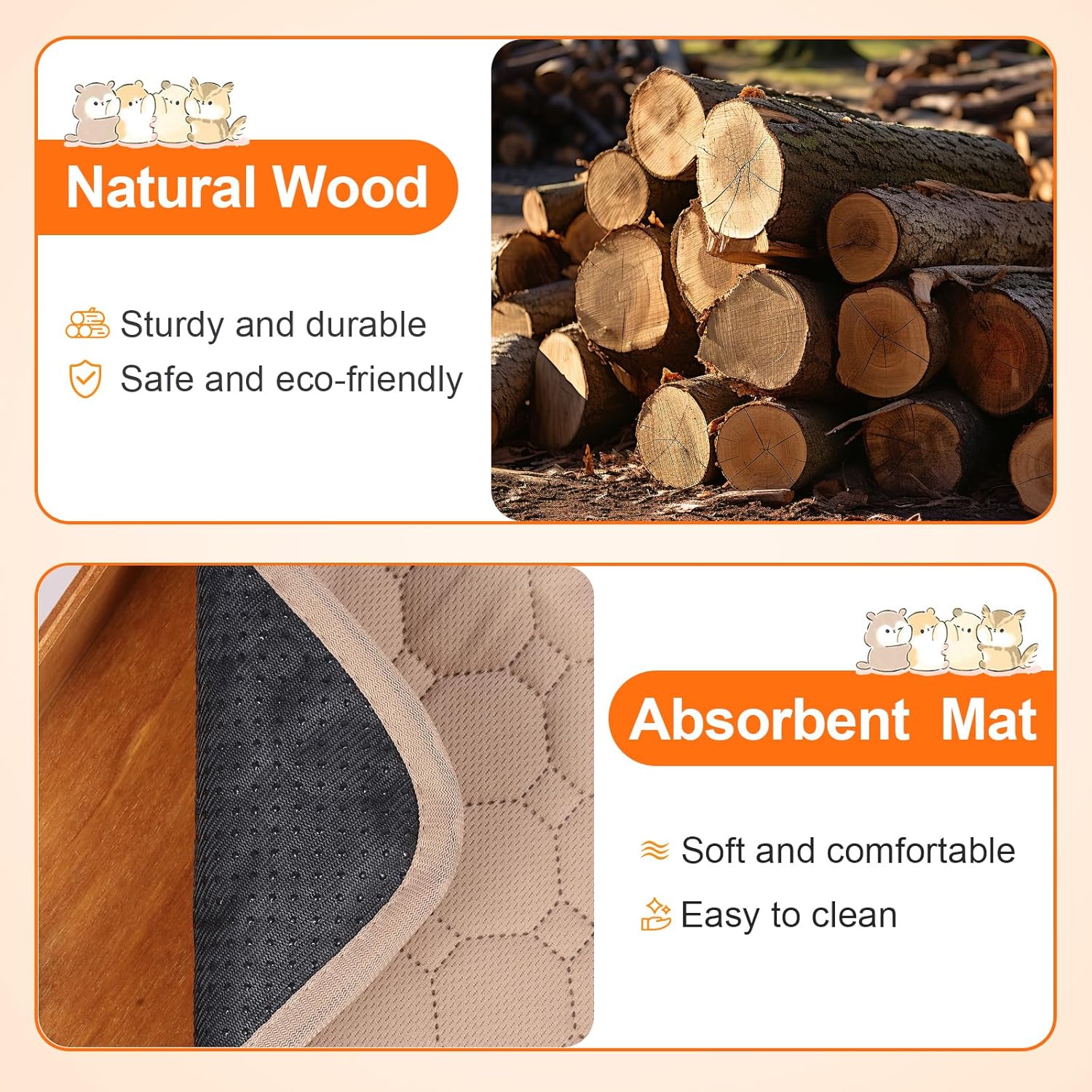 - đăPremium MaterialăThe upgraded guinea pig castle is made of premium wood plywood, safe, environmentally friendly, non-toxic, durable, very suitable for small pets to play and rest. The wooden guinea pig hideout is intelligently designed for easy assembly, with simple steps and securely screwed-together planks. Following the detailed instructions allows pet owners to swiftly complete assembly. This sturdy construction provides a reliable and long-lasting shelter for pets.
