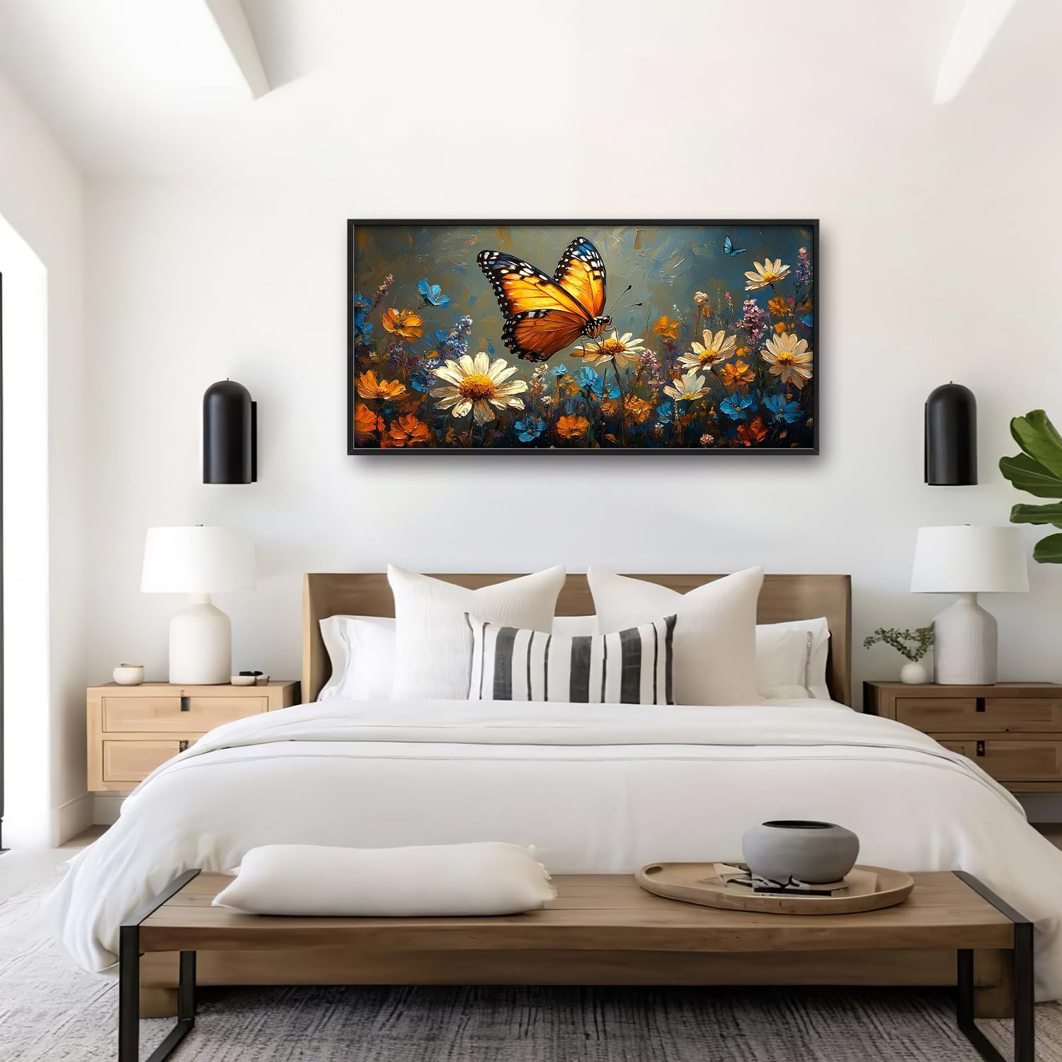 Large Butterfly Daisy Wall Art for Living Room, Floral Landscape Canvas Oversized Wall Decor, Flower Scenery Aesthetics Framed Pictures Painting Print Artwork for Bedroom Office 60"L x 30"W