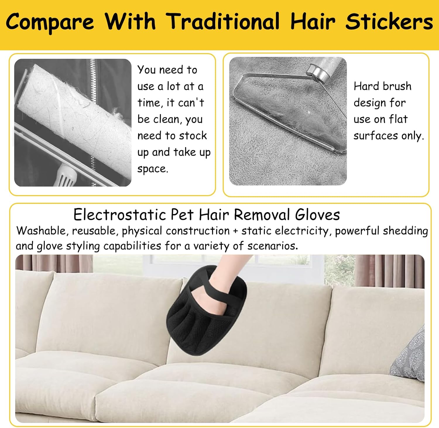 - 【All-Surface Fur Cleanup】Eliminate stubborn pet hair from sofas, carpets, car seats, clothes, and pet beds in seconds. The reusable design covers large areas quickly, making dog and cat hair removal simple for homes or cars.