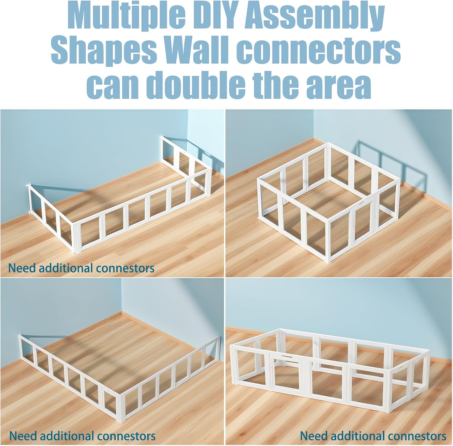 - 【Easy to Assemble】 The indoor pet playpen has a modular design, which can be assembled and disassembled in minutes without any tools. The included suction cups and connectors make it easy to secure the enclosure firmly to the floor and not easy to be moved by your pet
