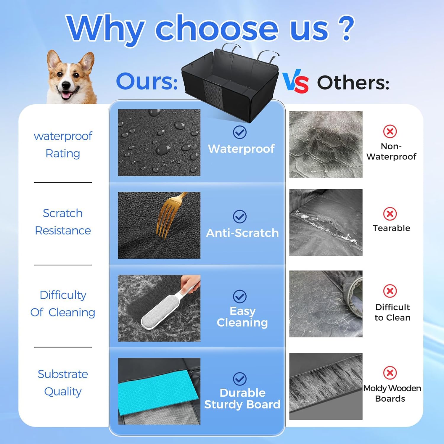 - [Enhanced Stability]:Stability is crucial during vehicle operation.Our dog car seat covers are equipped with many seat buckles,and breathable visual mesh windows,which can soothe your pets,relieve their anxiety,help you drive more stably and safely