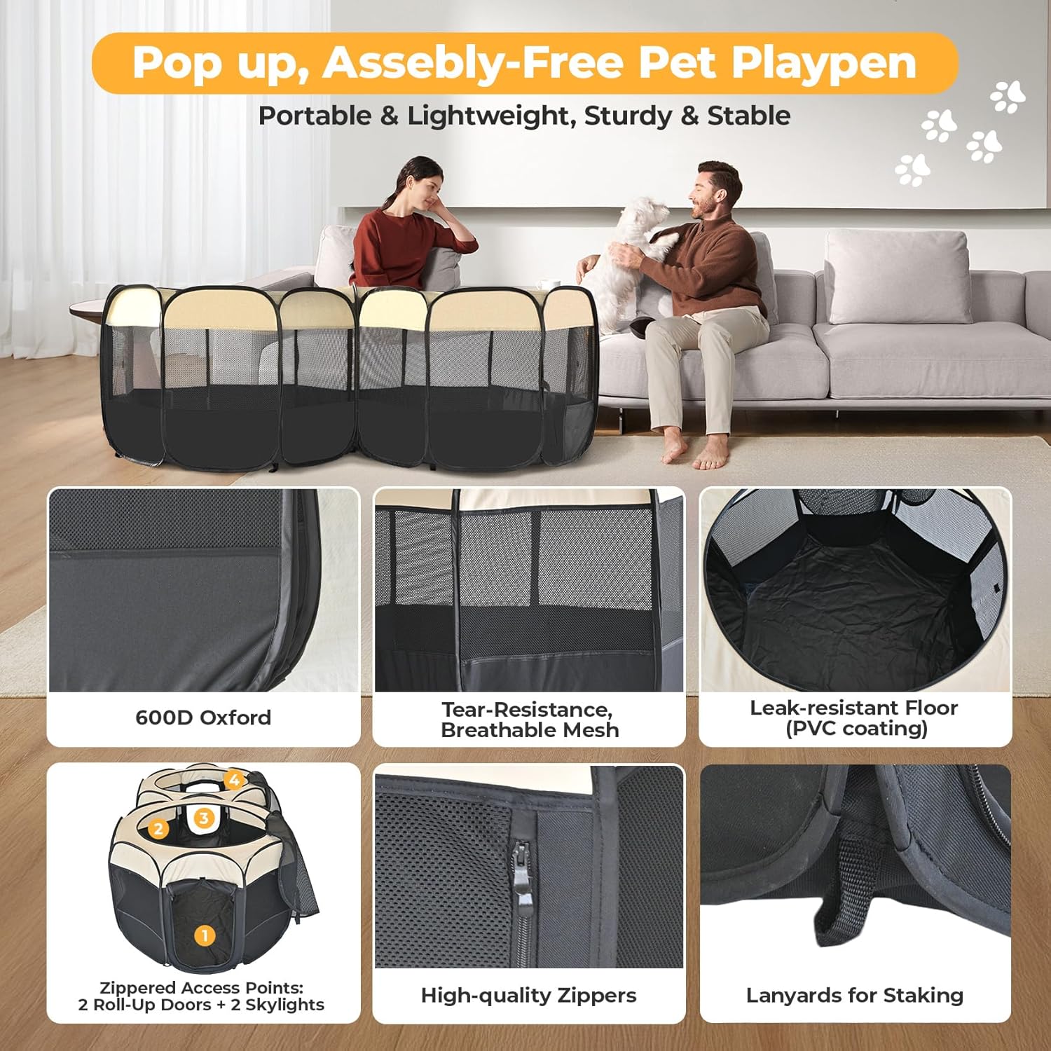 - 𝐇𝐞𝐚𝐯𝐲-𝐃𝐮𝐭𝐲 𝐌𝐞𝐬𝐡 & 𝟔𝟎𝟎𝐃 𝐎𝐱𝐟𝐨𝐫𝐝: Crafted with heavy-duty tear-resistant mesh and durable Oxford fabric for breathability and visibility, supported by a robust steel frame with reinforced seams for stability. The anti-tip structure and secure zipper closure prevent escapes while ensuring safety, and the spacious, well-ventilated interior keeps your pet comfortable and stress-free during playtime.