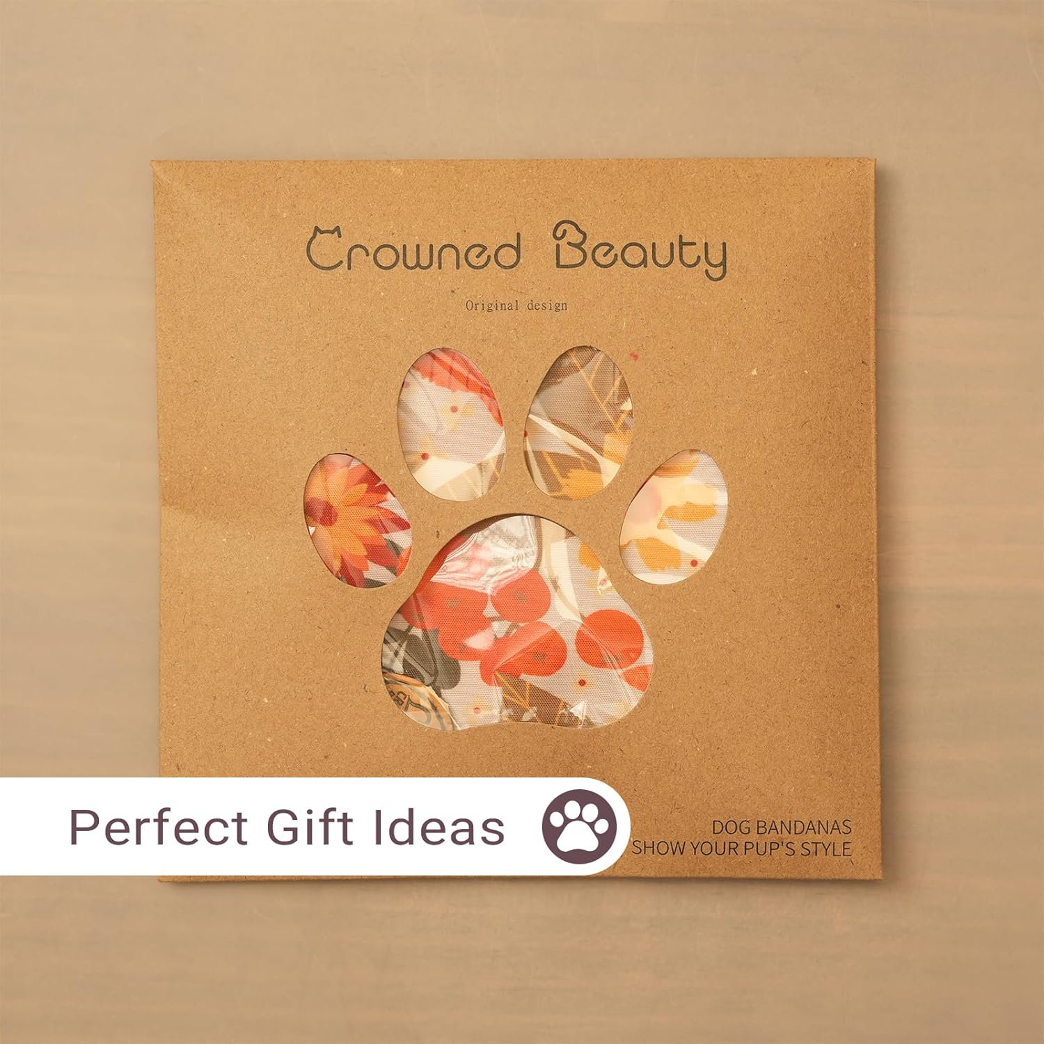 CROWNED BEAUTY Fall Dog Bandanas Reversible Large 2 Pack, Rustic Flower Set, Orange Adjustable Triangle Holiday Scarves for Medium Large Extra Large Dogs Boy Girl Pets DB182-L