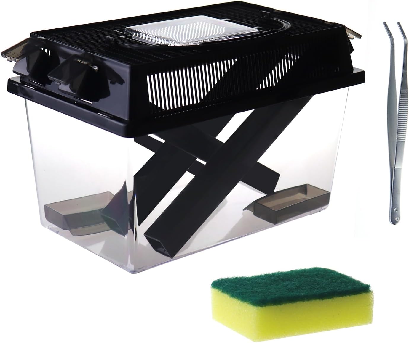 Reptile Cricket Keeper, Transparency Cricket Pen with Tubes, Insect Keeper with Water & Food Bowls for Bearded Dragon Gecko Lizards Chameleon Snake