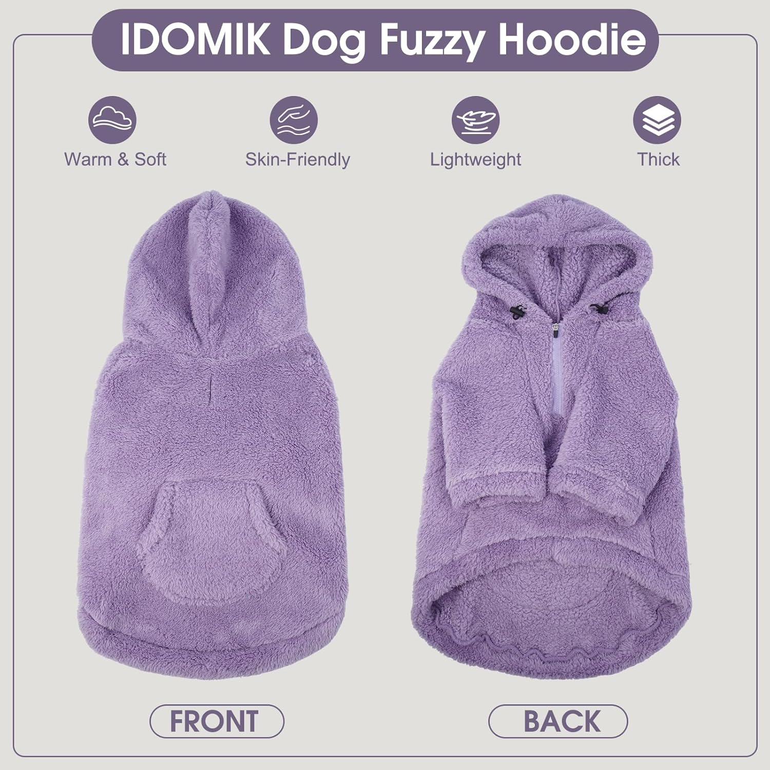 IDOMIK Fuzzy Dog Sweater with Adjustable Hood, Warm Fleece Dog Sweater Hoodie with Harness Hole & Pocket, Pullover Sweaters for Large Dogs, Fuzzy Hooded Sweatshirt for Fall Winter Christmas,Purple,XL