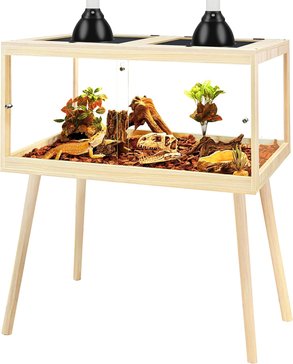 - 【Spacious Elevated Design】Available in 24", 30", 36", and 48" lengths with a raised 4-legs design(please refer to pic2 for exact size), this habitat offers ample room for reptiles to explore, bask, and hide. Refer to the second image for detailed sizing to select the best fit for your pet. The bottom includes an acrylic liner that makes cleaning easier while keeping the interior tidy.