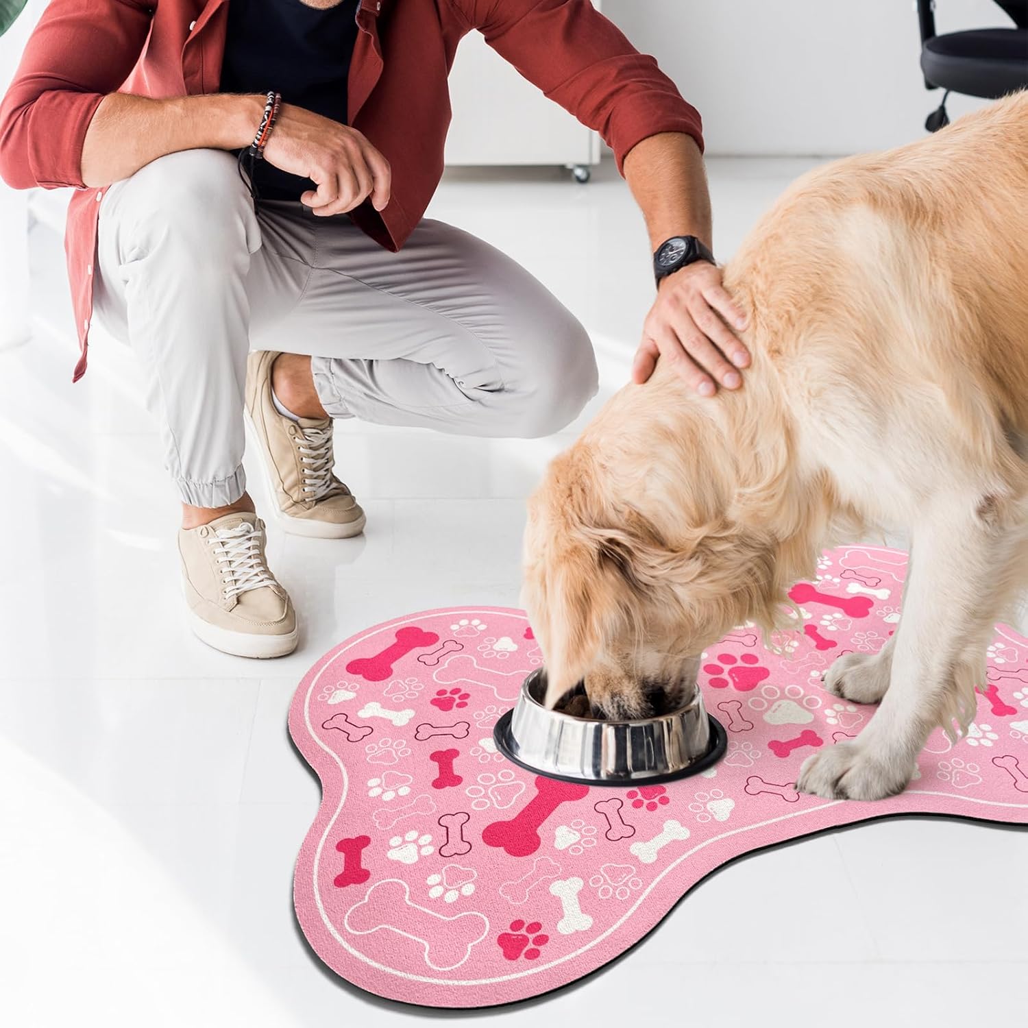 - CUTE AND FASHIONABLE DESIGN: Our pet feeding mats are designed with dog paw and bone motifs, very interesting. It is available in a variety of colors, sizes and shapes to provide a unique dedicated space for your pet's food and water bowls, and you can choose a style that matches your home dĂŠcor.