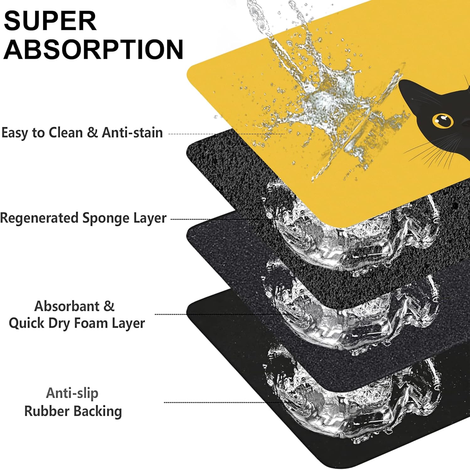 Cute Black Cat Peeking Dog Cat Food Mat-Absorbent Placemat for Food and Water Bowl, Waterproof Non Slip Rubber Backing Dog Food Mats for Floors, Pet Supplies 12 * 20 inch