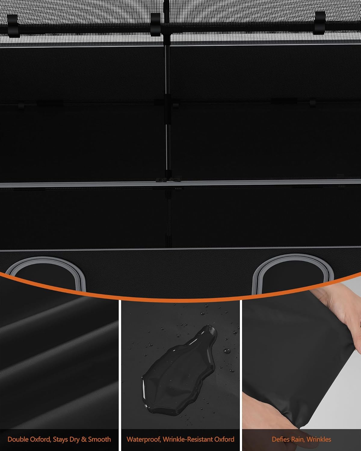 - The latest modern design: This Chicken playpen is made of brand-new PE material and double-layer Oxford fabric, this pet fence offers sun protection, waterproofing,and abrasion resistanceâsay goodbye to unsightly white creases and scratches. Featuring 1.5mm high-density nylon mesh, it creates an ultra-fine barrier with good visibility and ventilation, you can watch your pets more easily