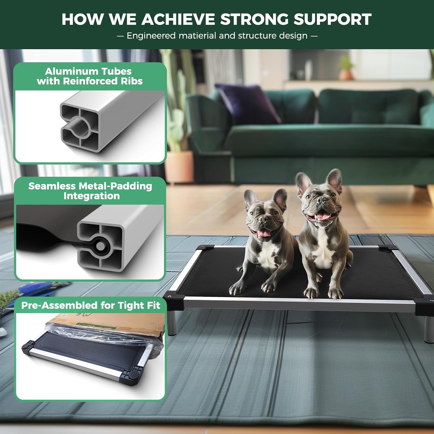 - Indestructible & Dog-Safe: Crafted with a premium aluminum alloy frame and chew-proof edges, this bed withstands aggressive chewers while keeping your pupâs gums safe and happy.