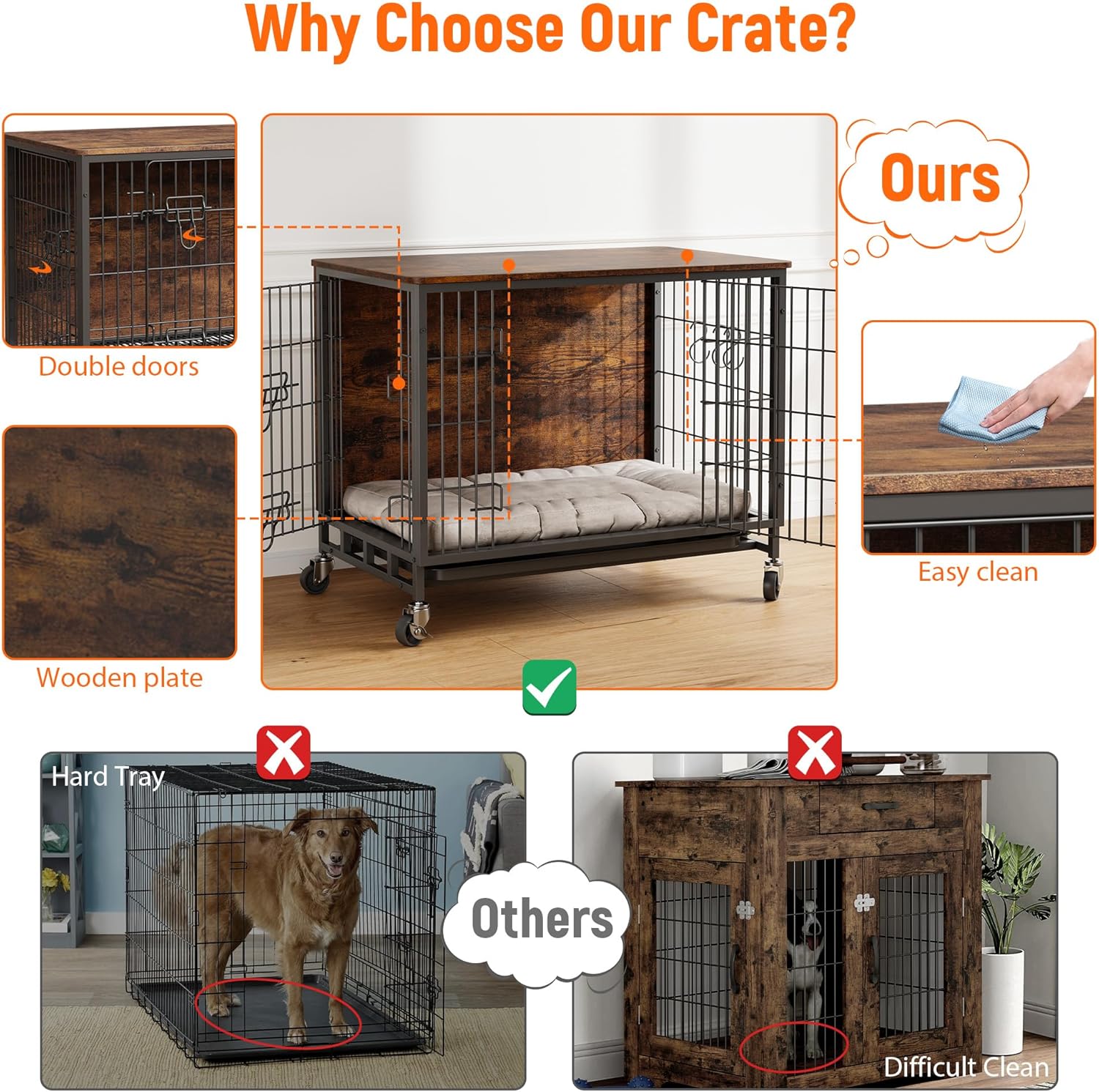 - 1.Stylish Multi-Functional Furniture: Our wooden dog crate furniture serves as a chic side table or nightstand, blending seamlessly with your home decor. This indoor kennel features a spacious top, perfect for displaying decorative items or storing pet essentials, making it both stylish and practical for any living space.