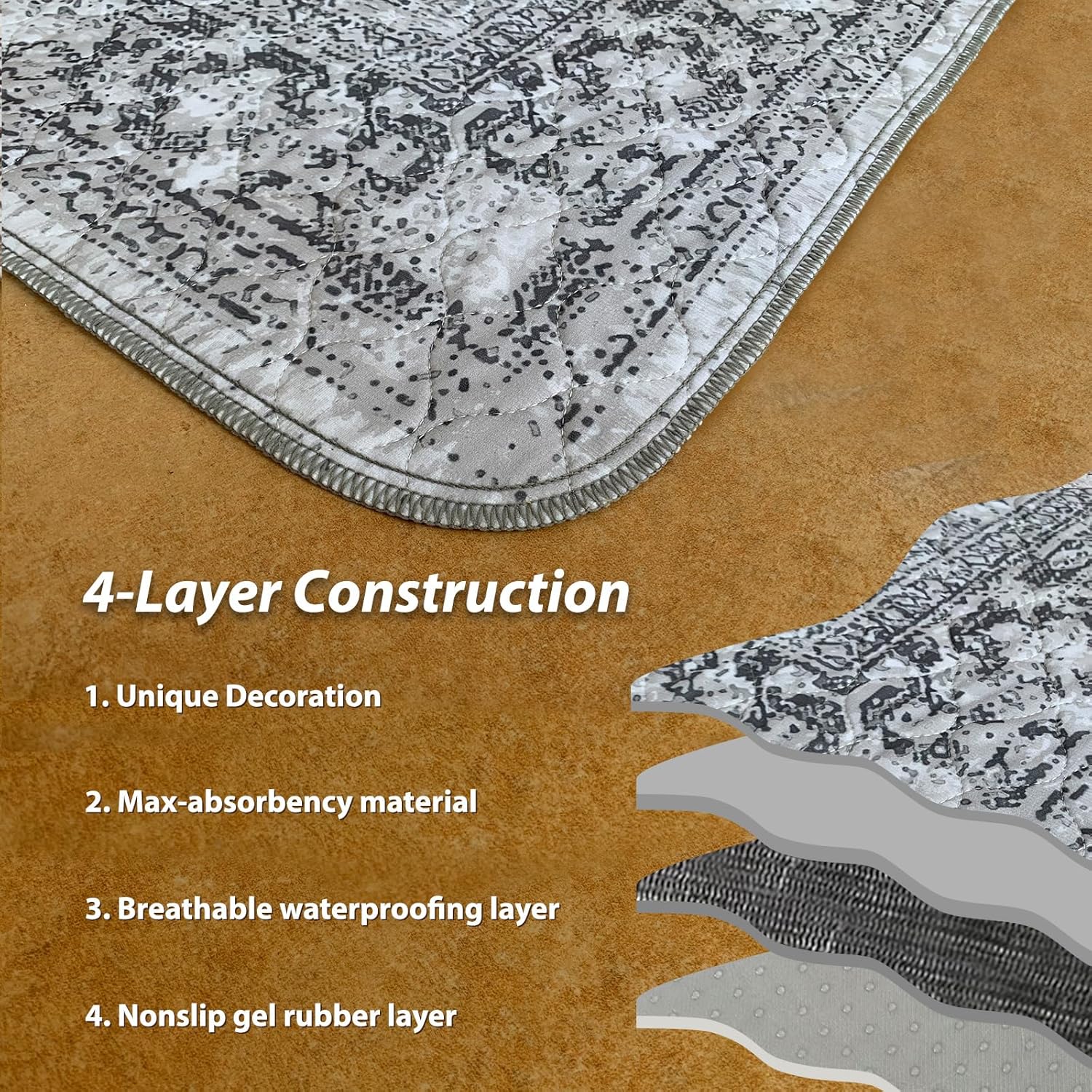 nunubaby Washable Pee Pads for Dogs, Stylish, Non-Slip and Leak-Proof Pee Pads. Reusable Potty Pads for Dogs for Crates and Floors.(Gray/Geo, 72" x72")