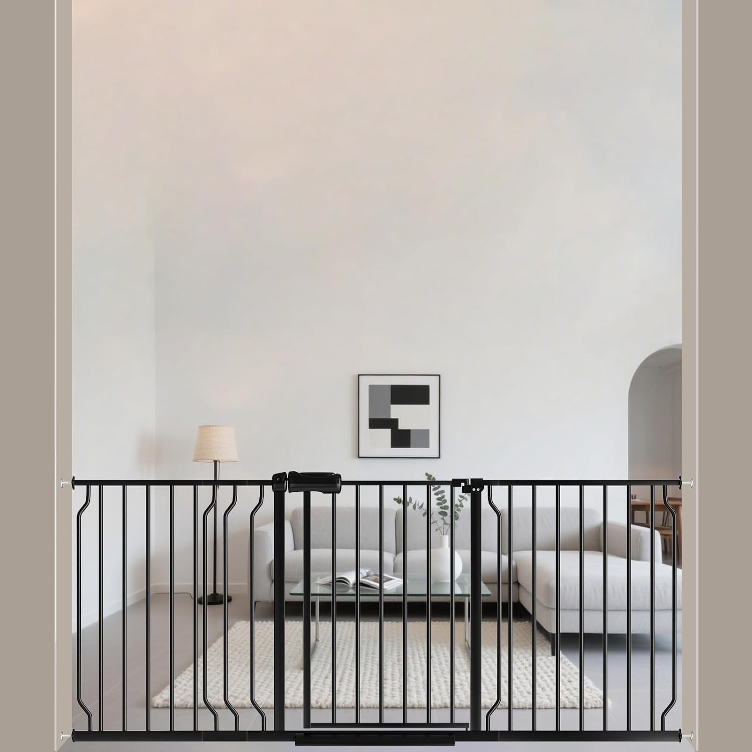 - 【Extensions&Multi Use】Additional baby gate extensions allow you to extend the width of your baby gate extender for other spaces in the home,suitable living room kitchen doorways and stairs .Fits wide openings, from 29 inch to 85.03 inch.The safety baby/pet gate can keep babies away from the dangerous kitchens or stairs.
