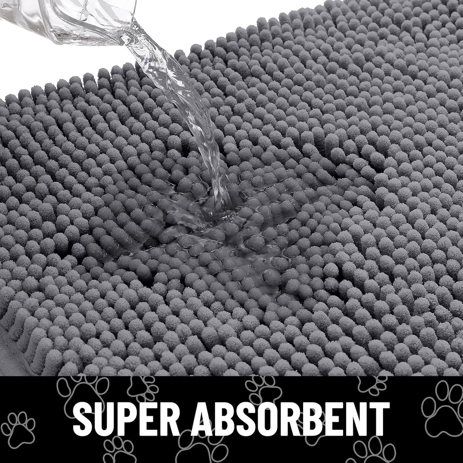 Smiry Dog Door Mat for Muddy Paws, Absorbent Dirt Trapper Non Slip Quick Dry Washable Chenille Mat for Mud Dogs, Entry Rug for Indoor and Outdoor (30x20 Inches, Dark Grey and Black)