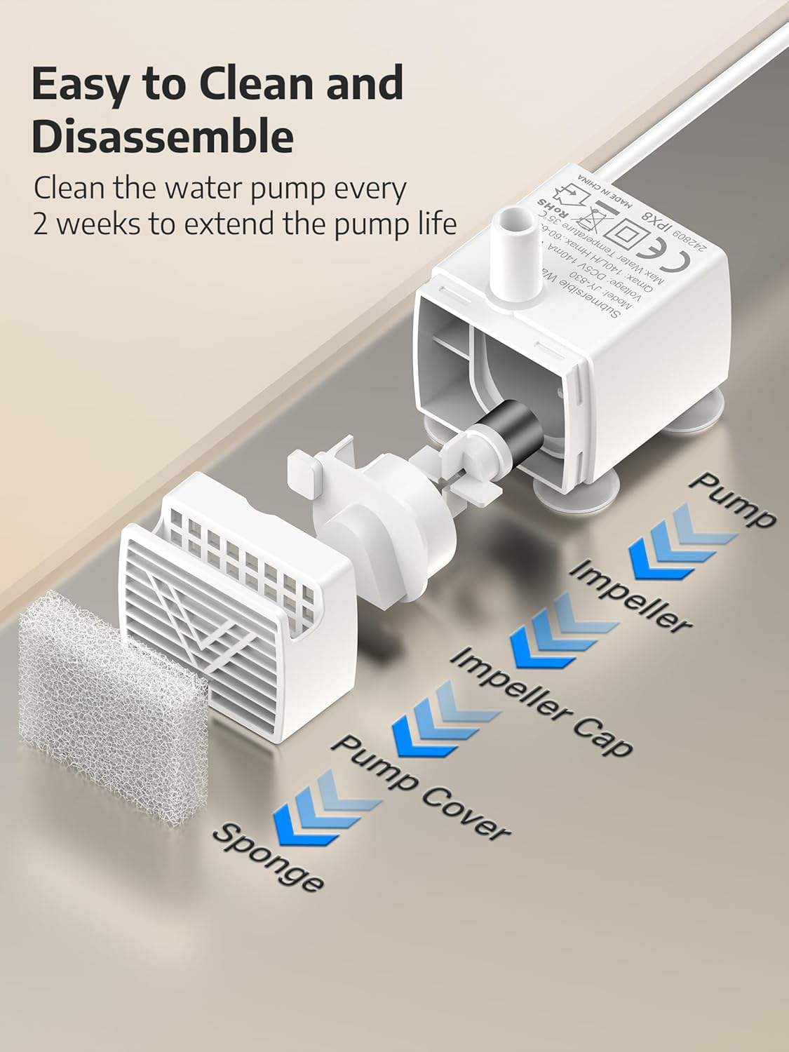 - Whisper Quiet Water Pump: Our low-noise pump of large pet water fountain operates at â¤25 dB, allowing a gentle smooth sound not to cause disturbance and creating a natural water source.