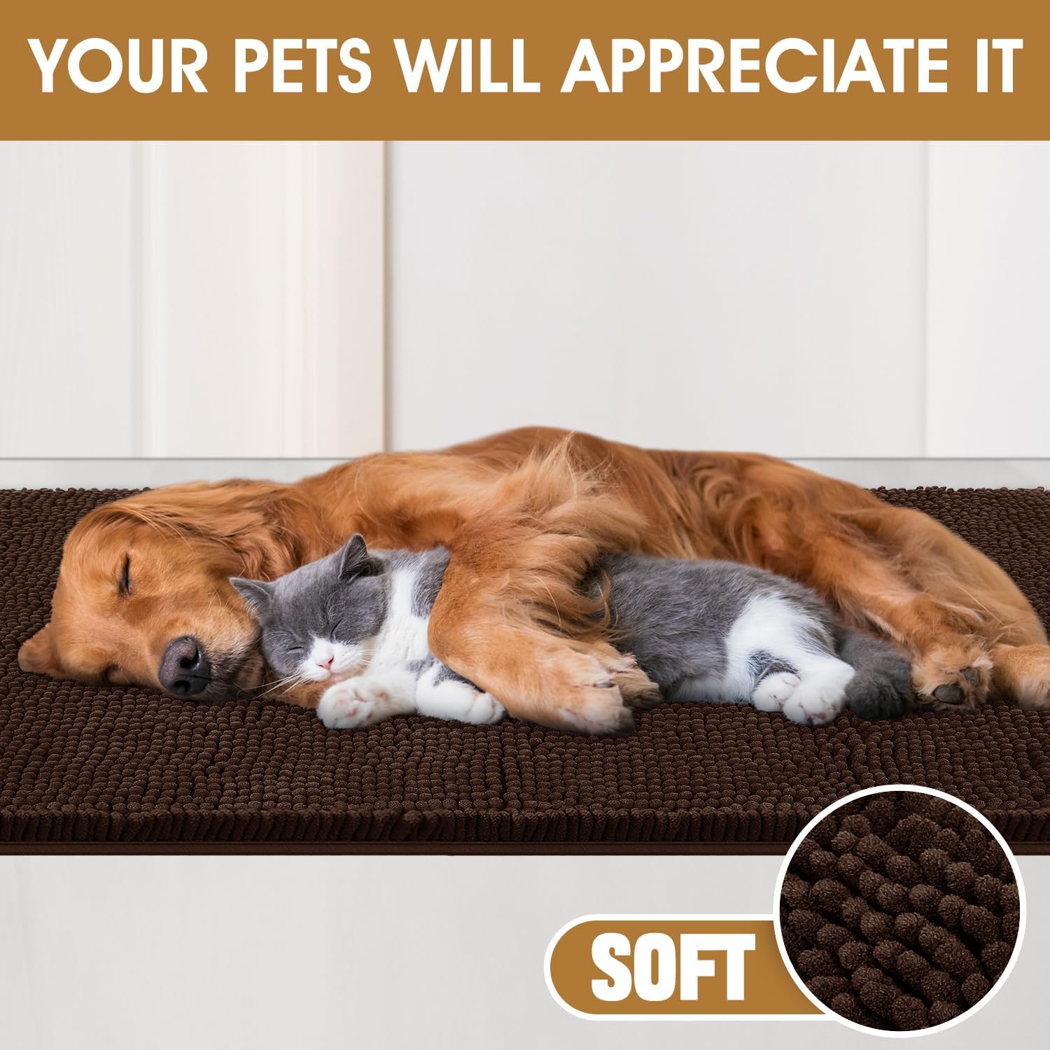 Extra Large Dog Door Mats for Muddy Paws, Chenille Absorbent Dog Mats, Non Slip Heavy Mud Mat for Dogs, Soft Pet Mat for Entryway, Mud Paws, Inside Floor,60" x 36", Brown