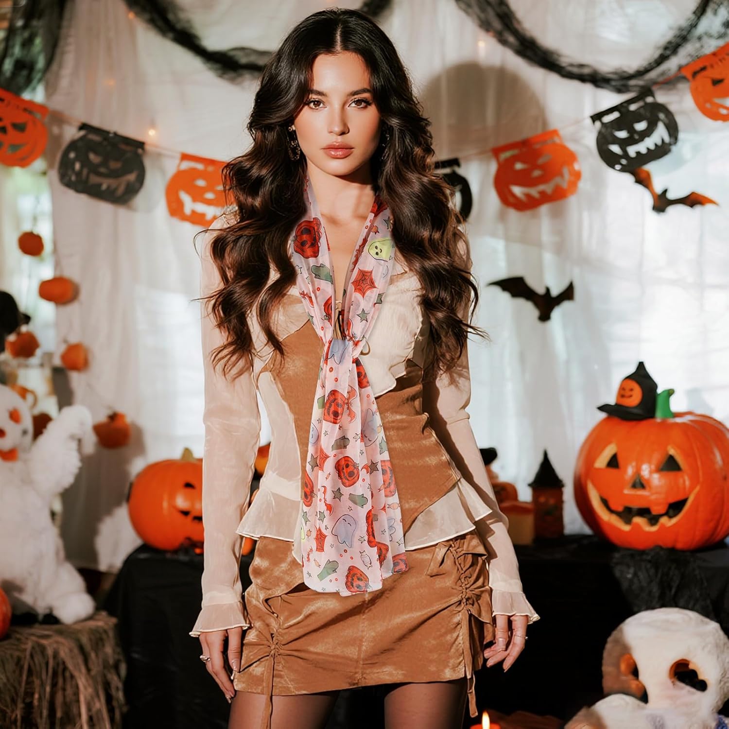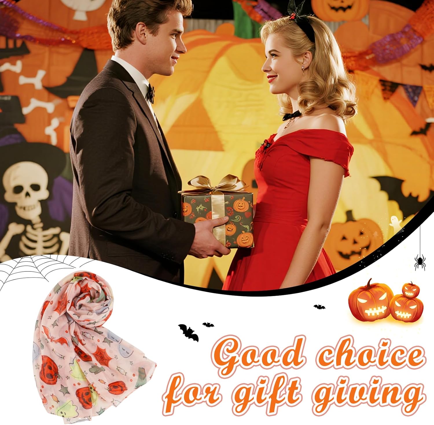 - Occasion:This Halloween-inspired print scarf is perfect as an addition to your Halloween costume, and the pumpkin boo pattern scarf is in line with the festive atmosphere. You can use it as a shawl to attend an evening party, it would be gorgeous if you pair it with a nice dress