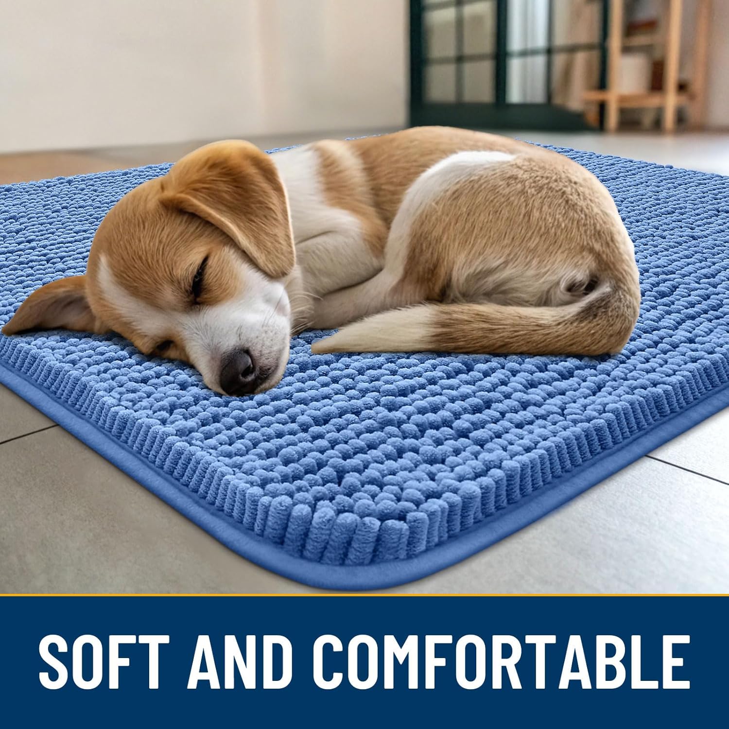- [Absorbent and Dirt Trapper] High-density chenille dog mat, super absorbent and dirt-catching, whether wet after shower, muddy or moisture bring back by dogs, it can absorb well, so that you and your favorite pet can say goodbye to the wet and mud. It's an excellent choice for use as an entryway door mat, a welcome door mat or a dirt-trapping door mat.
