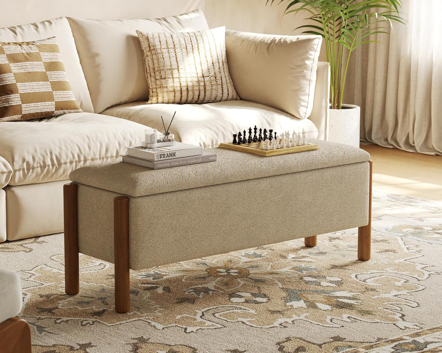 Storage Ottoman Bench, End of Bed Bench for Bedroom, 47" Boucle Upholstered Entryway Shoe Seat Bench, Holds up to 660 lb Storage Ottoman, Padded Blanket Chest Stool Foot Rest for Living Room Beige
