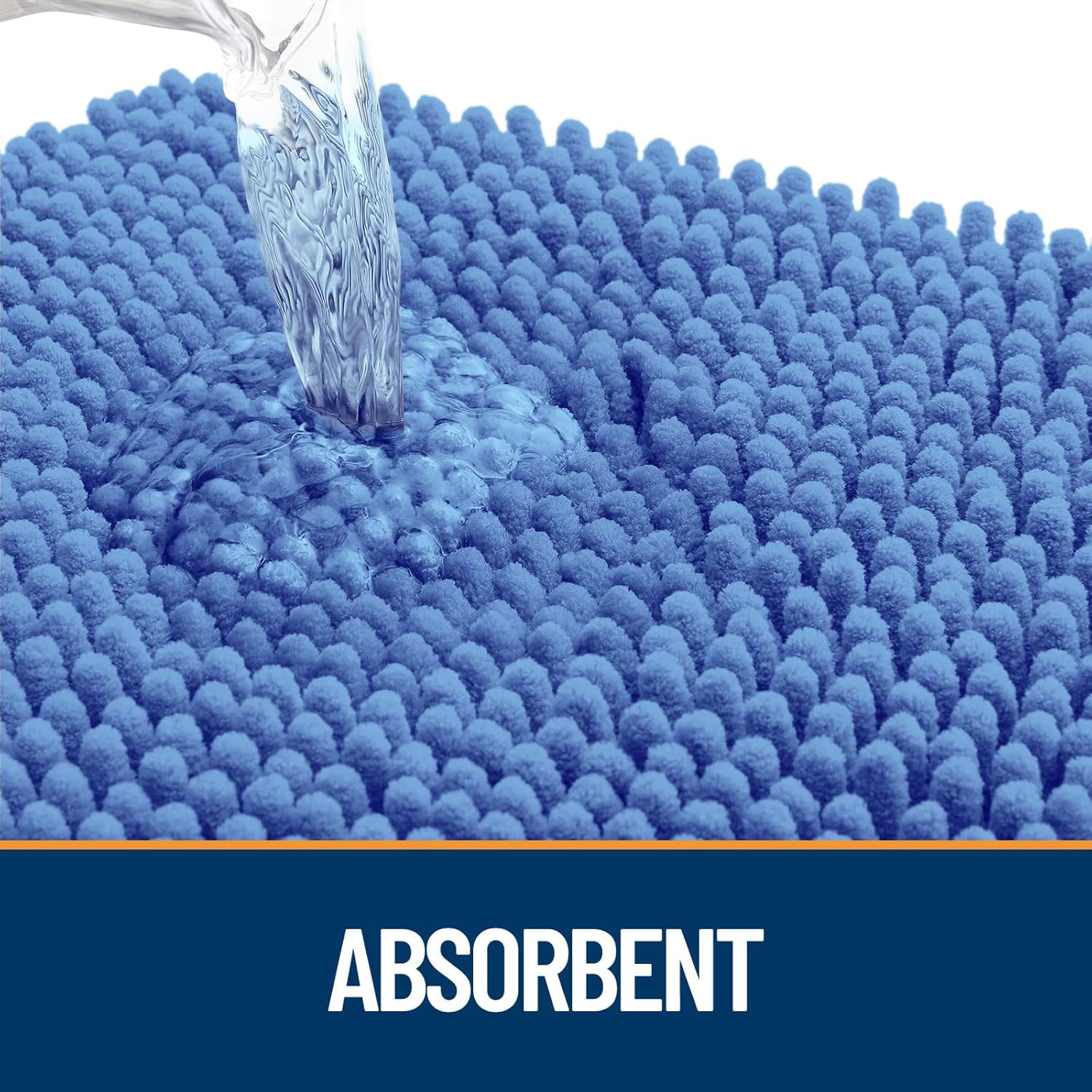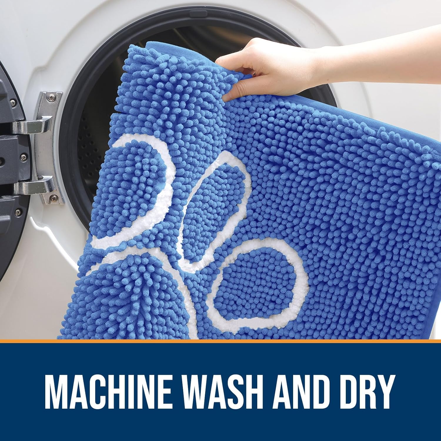 OLANLY Door Mat for Muddy Dog Paws 48x30, Absorbent Chenille Mud Doormat with Paw Print Design, Non-Slip Washable Doormat for Indoor Entryway, Quick-Dry Pet Bed Mats for Dirty Dogs, Cornflower Blue