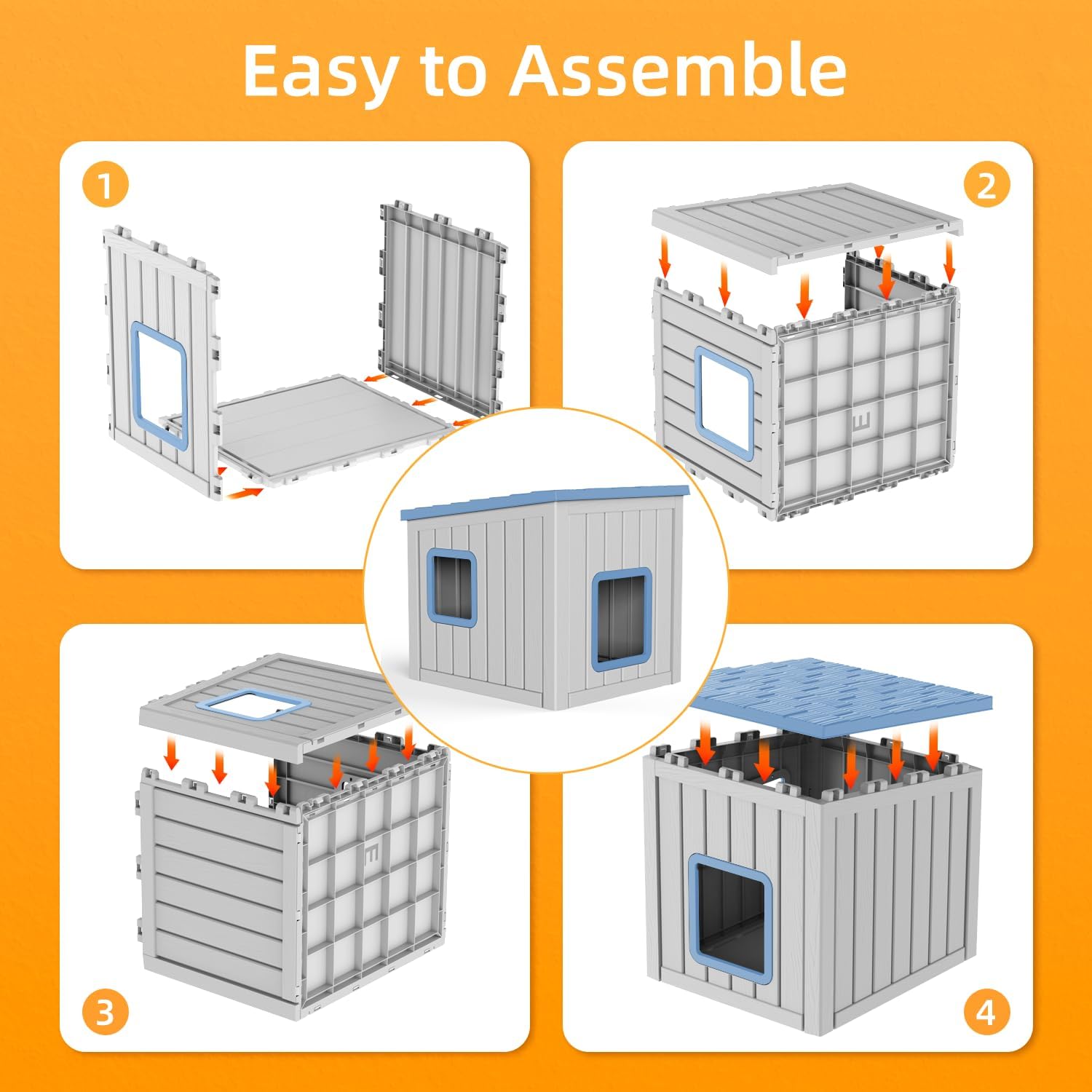 - Elevated Floor & Easy to Clean:The elevated floor design keeps the dog house away from damp ground, ensuring a dry space. The smooth resin surface is easy to cleanâsimply wipe with a cloth to maintain hygiene, ideal for busy pet owners.