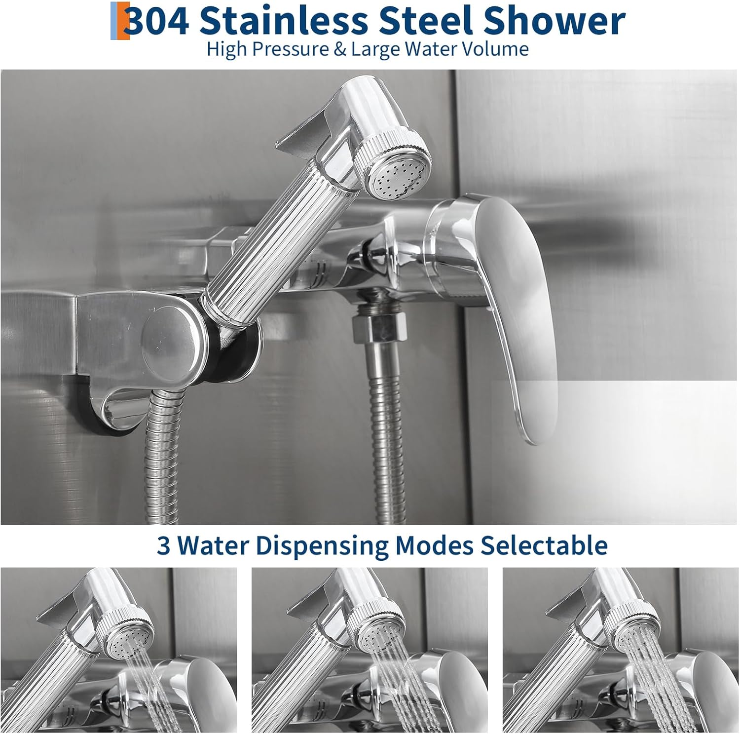 - Multi-Functional Shower System & Upgraded Filter — Cleaner & Safer:Equipped with a stainless steel shower head, detachable sprayer, and upgraded water filter board, this dog wash station guarantees a clean, safe, and hygienic dog bath. The adjustable shower provides thorough cleaning for dogs of all sizes, while the filter prevents clogging, extending the life of the dog washing tub.
