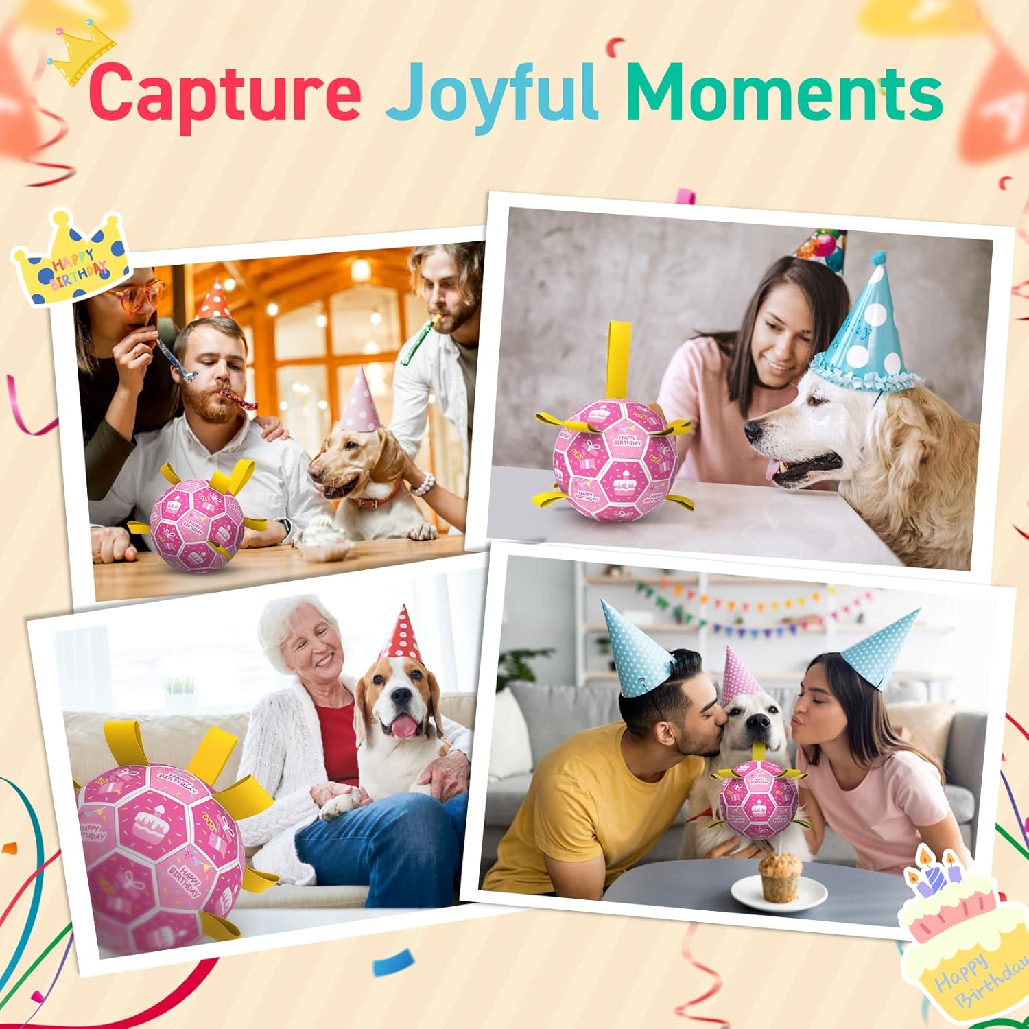 - Dog Birthday Gift: Celebrate your dog’s special day with a toy that’s as joyful as it is tough! Our Birthday-Themed Dog Toy Ball is the perfect way to add a little extra fun to their big day. Whether you’re throwing a party or just showing some extra love