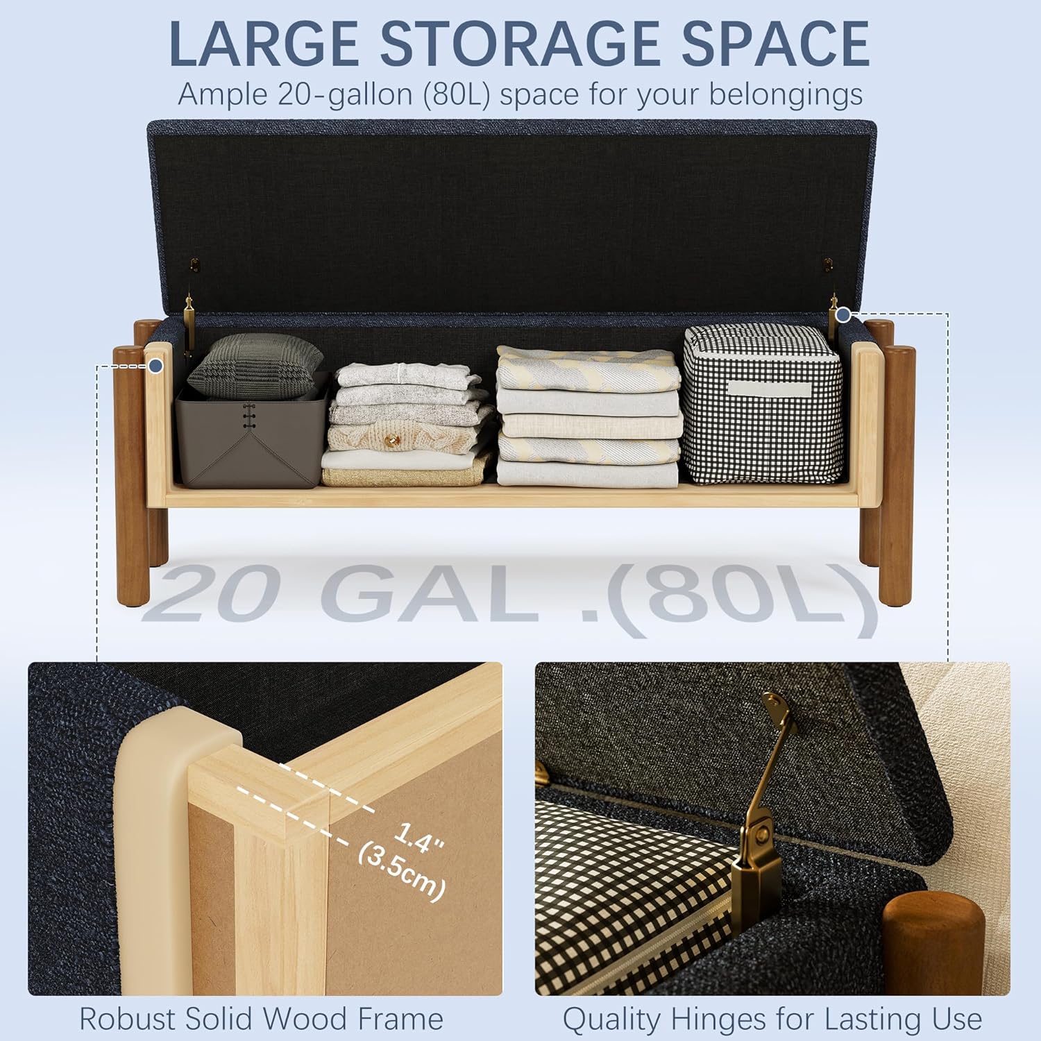 - AMPLE STORAGE CAPACITY: Discover massive 29Ă103Ă23.5cm interior space within this Ottoman with Storage! Easily organize bedding, seasonal items, or shoes while enjoying a remarkable 660lb weight capacity. Reinforced 3.5cm-thick inner walls ensure durable, clutter-free storage for any room.