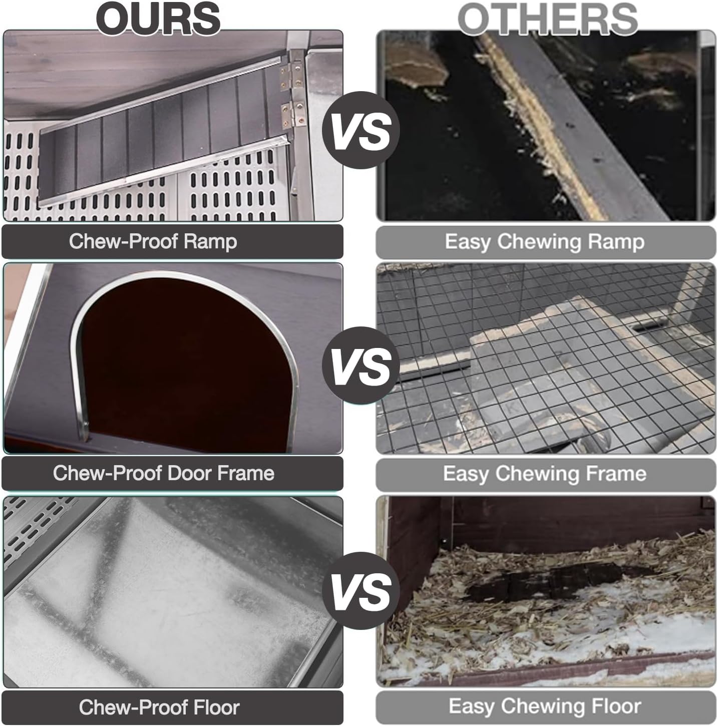 - ANTI CHEWING METAL EDGES Made of solid wood and the ramps, hiding holes and floor frames were reinforced with metal frames to prevent rabbits from gnawing and make the rabbit cages more durable. While being safe and breathable.Give your furry friend a cozy home