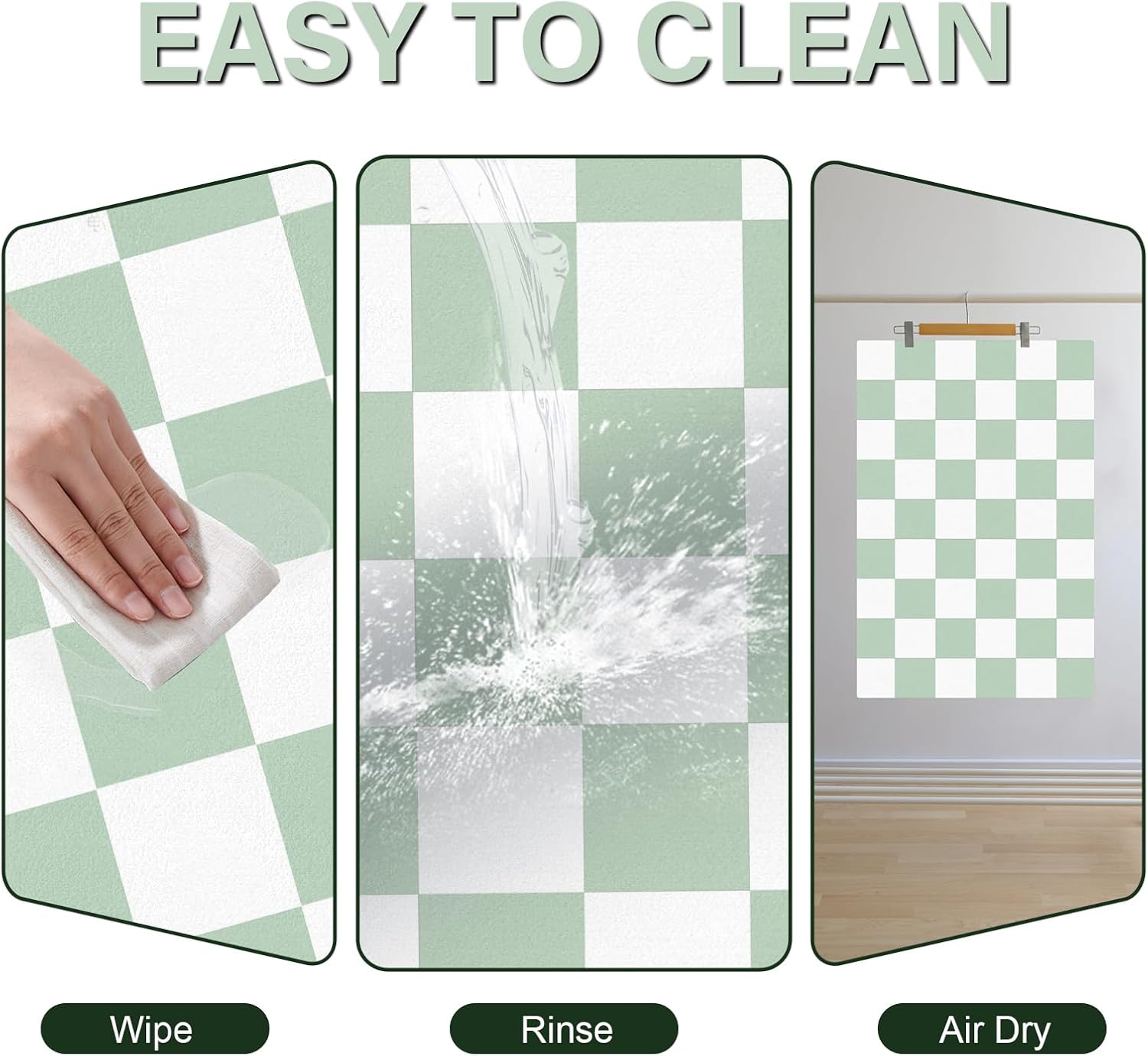 Pet Feeding Mat, 16"x 24" Absorbent Dog Food Mat, Checkered Cat Bowl Mats, Easy to Clean Pet Placemats, Quick Dry Dog Water Dispenser Mats for Messy Drinkers, Green & White