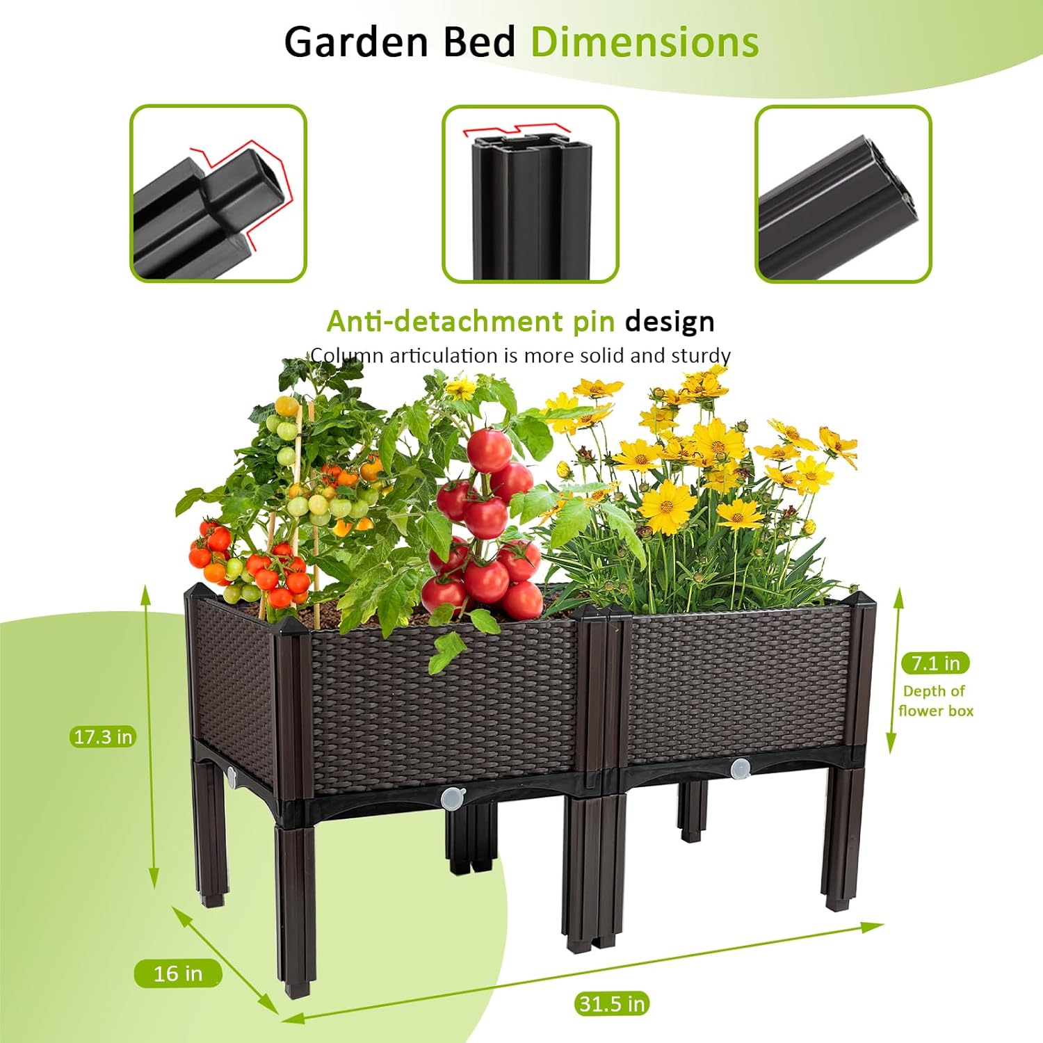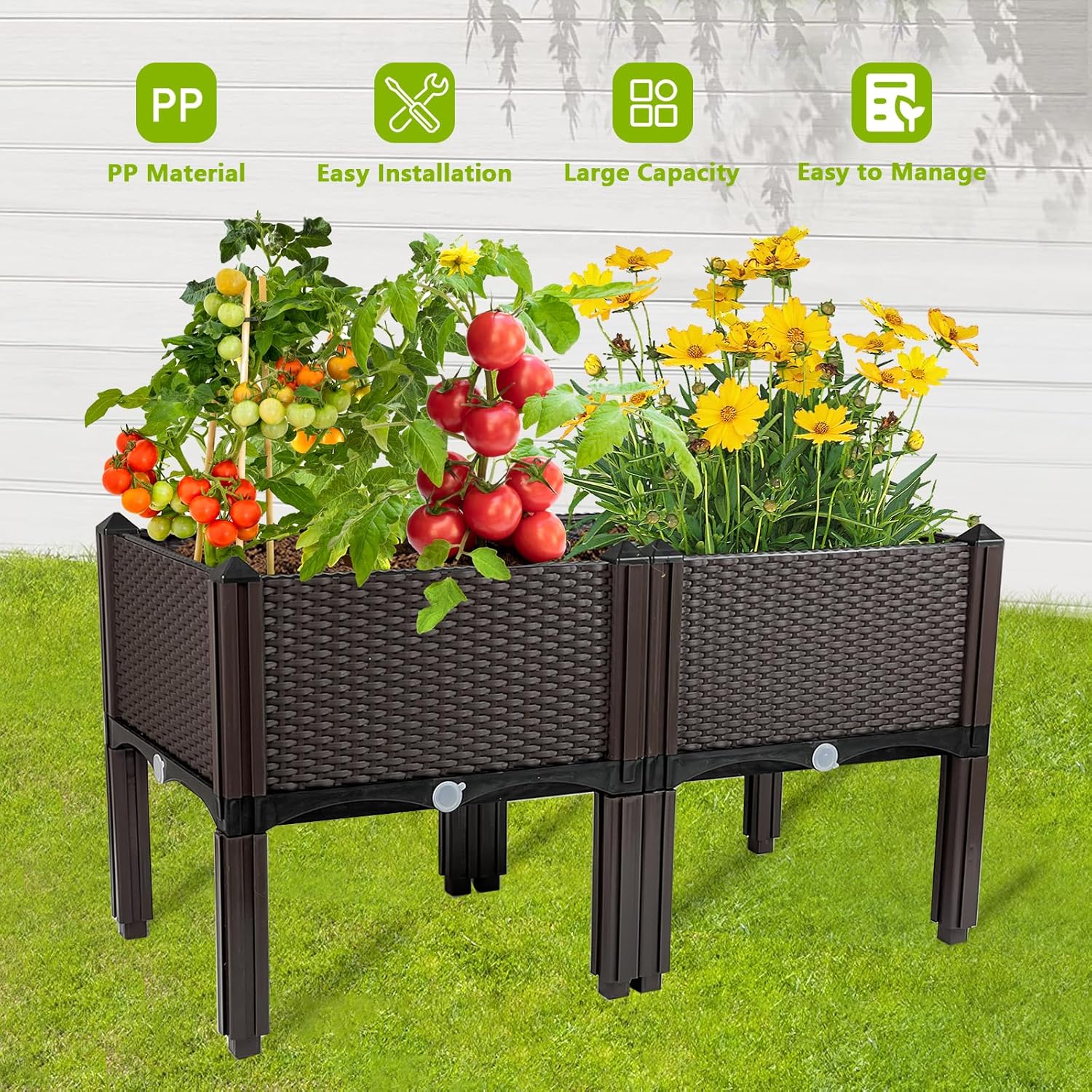 - 🌻【Durable Outdoor Growth Box】Our elevated planter boxes are made of reinforced PP material with a rattan pattern that is lightweight, high load bearing and reusable.