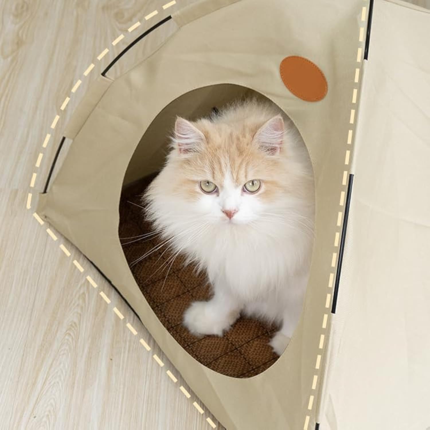 - 【Private & Secure Hideaway】Fully enclosed with soft yet durable walls, this cat tent provides a safe space for shy or anxious pets—ideal for busy homes or multi-pet households.