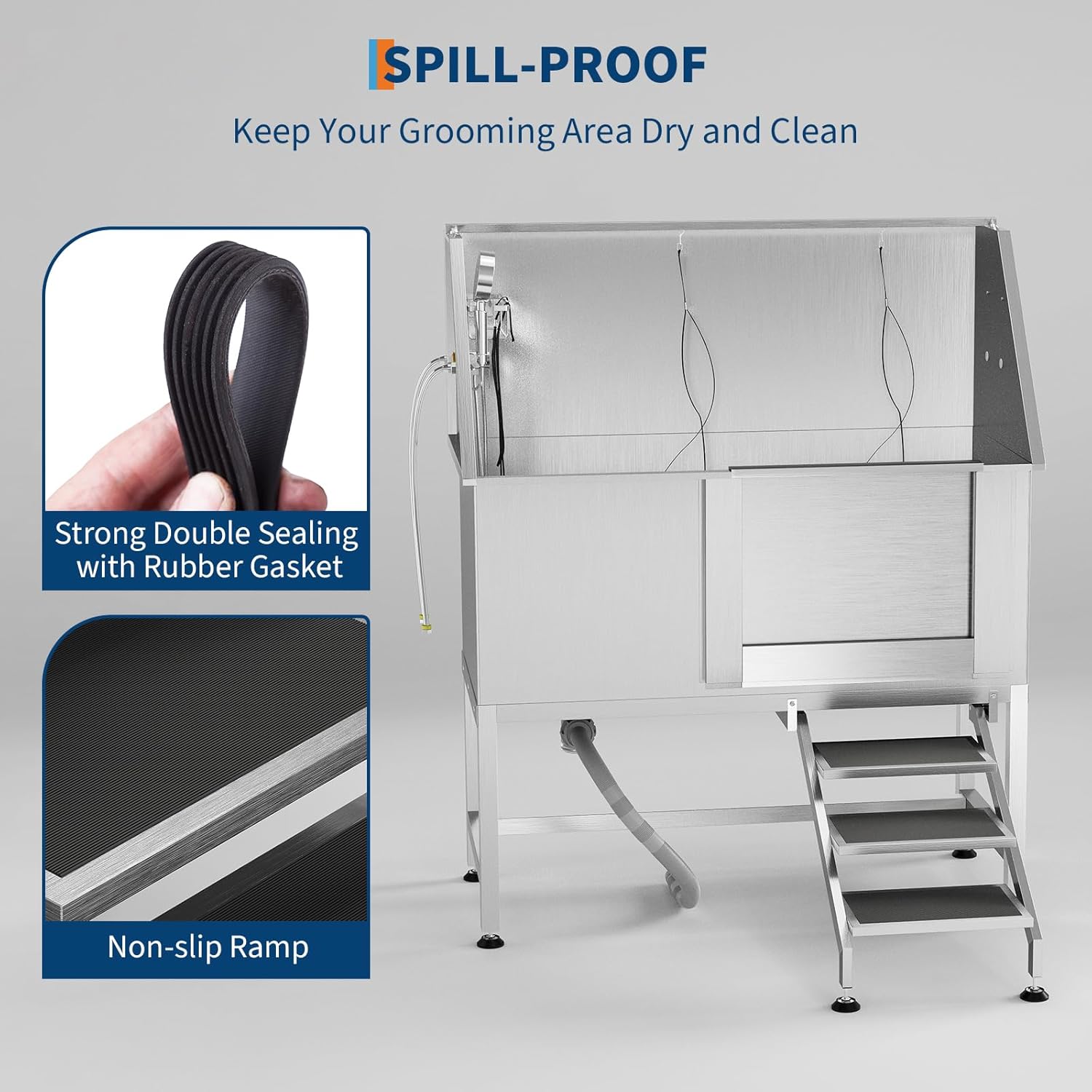 - Efficient Drainage System Removable floor grate prevents water accumulation and simplifies post-bath cleanup. Maintains tidy workspace during grooming sessions.