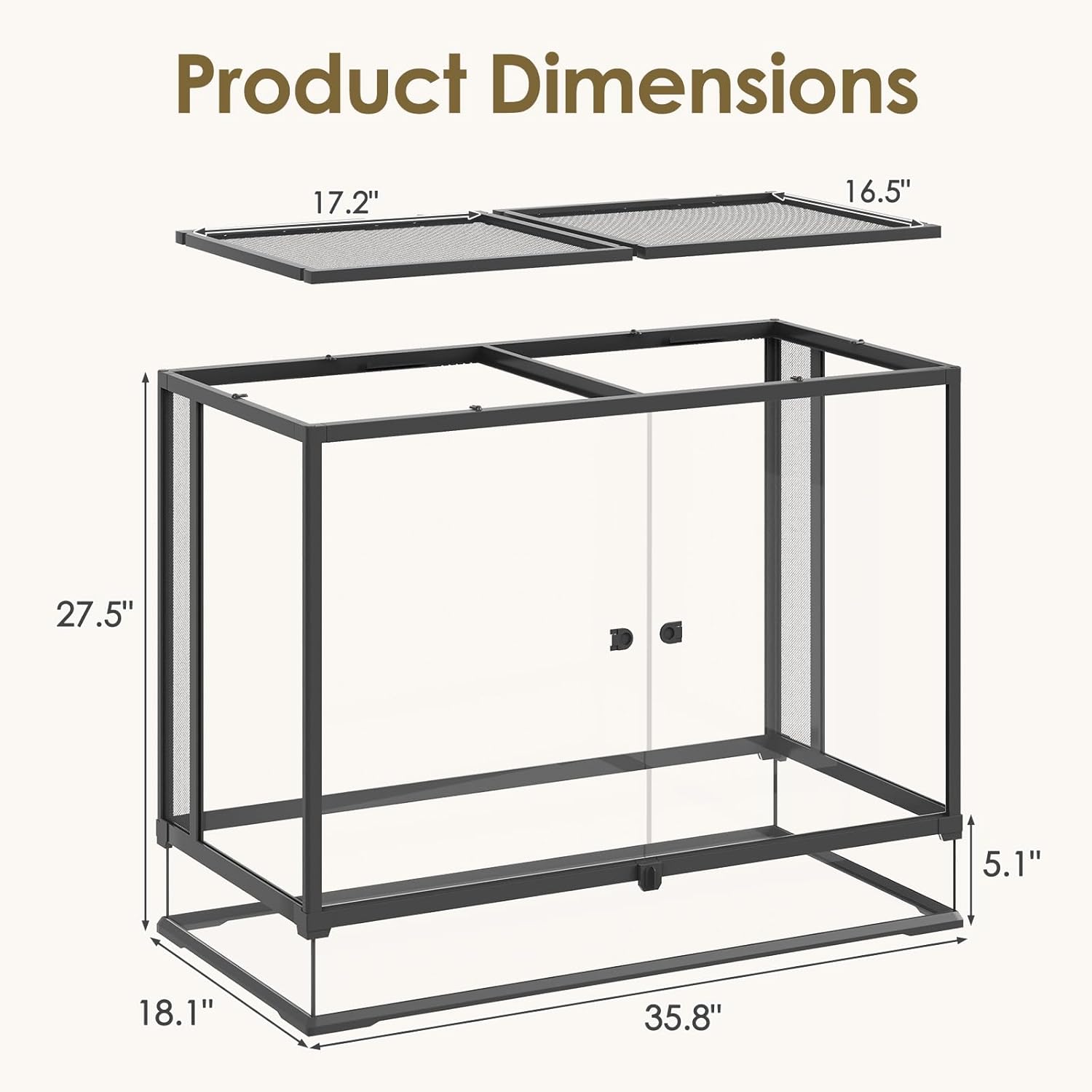 - Ventilated Design: Our reptile terrarium features interchangeable glass or mesh panels for rainforest or desert habitats, plus a mesh top and side vents for airflow. Removable lid and front-opening glass doors make feeding and cleaning simple