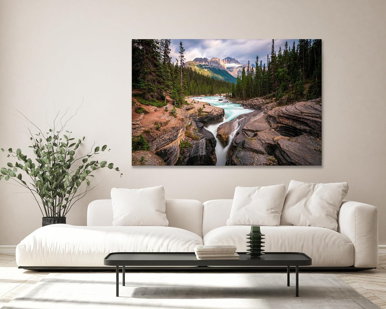 Nature Wall Art Prints - Ocean Forest Mountain Lake Canvas Landscapes - Small to Extra Large Living Room Bedroom Kitchen Bathroom Décor (Mountain River Waterfall, 35L" x 53W")
