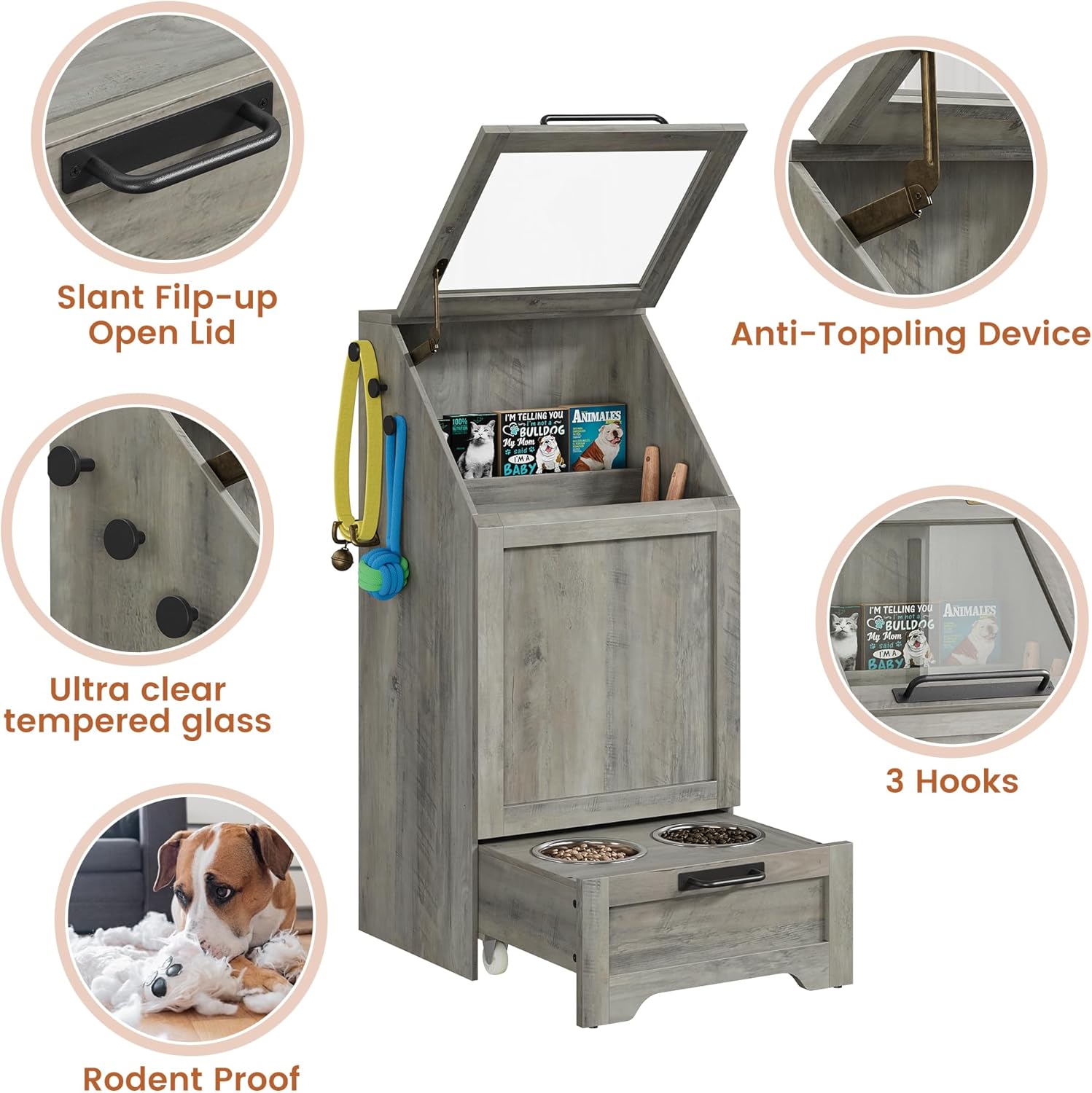 - Flip-Type Food Storage Cabinet: Equipped with a high-definition glass flip cover that lets you easily check food levels while keeping dust out, ensuring your petâs food stays fresh and clean.