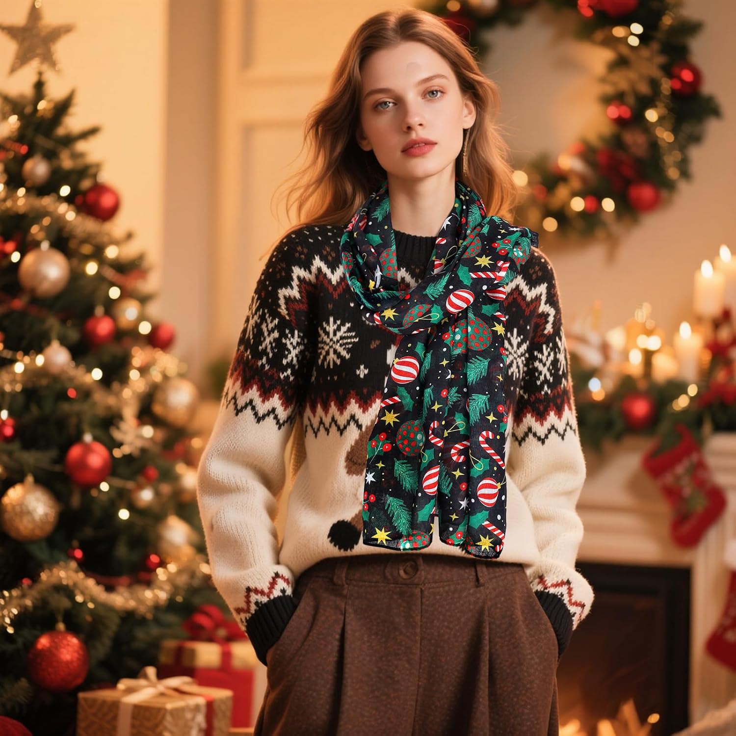 - Occasion:This christmas elements print scarf is perfect as an addition to your xmas costume, and the green black scarf is in line with the festive atmosphere. You can use it as a shawl to attend an evening party, it would be gorgeous if you pair it with a nice dress