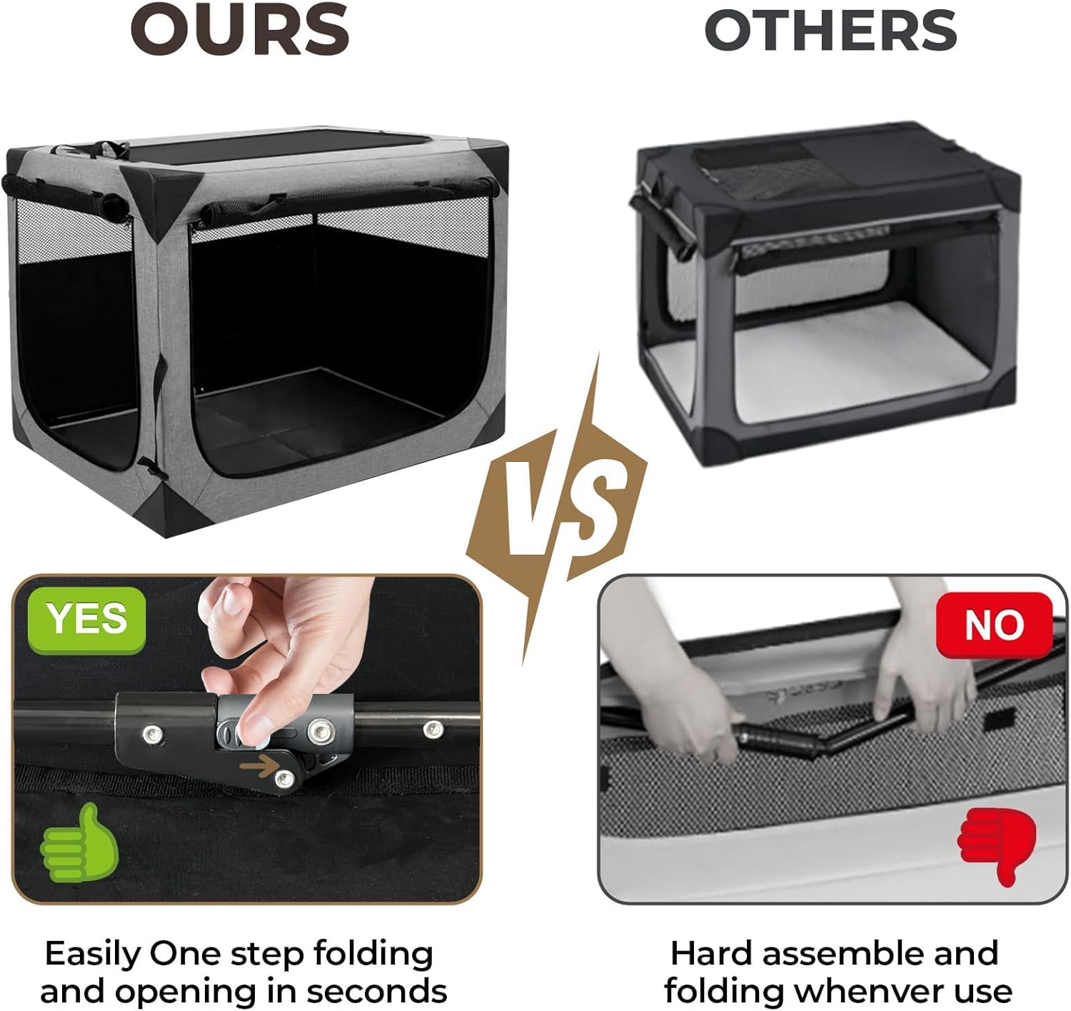 Dog Crate, Collapsible Soft Travel Crate for Large Dogs (3 Year Warranty), Indoor & Outdoor Portable Pet Kennel with Chew-Proof Mesh Window (Dark Gray, 30" L x 21" W x 21" H)